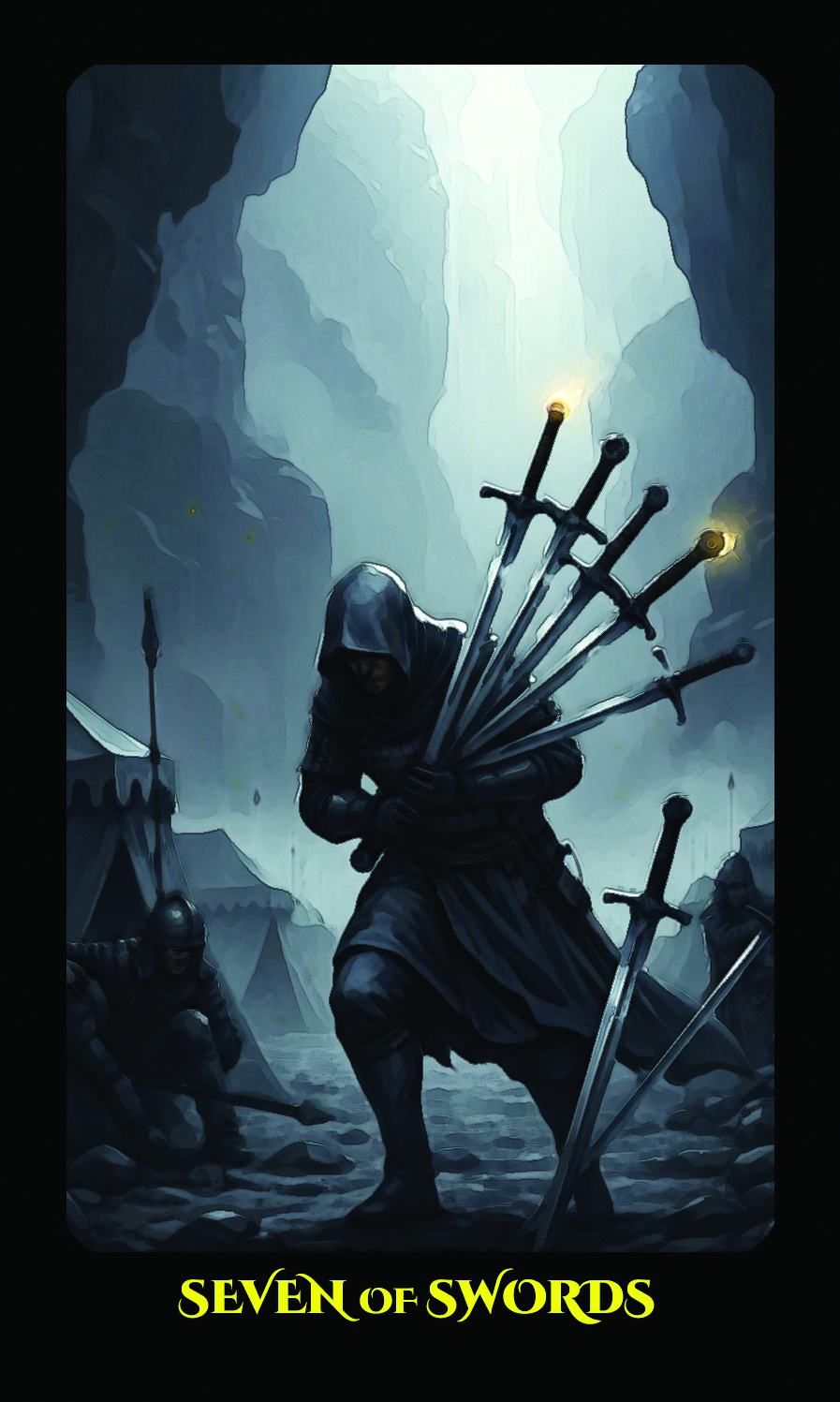 This tarot deck brings together our love for epic fantasy art with that rich, painterly feel you get from traditional oils and watercolors. Each card features dramatic scenes with deep blues melting into warm golds, all enhanced with digital filters that give them that luscious, hand-painted texture. We’ve used oil paint and artistic effects to create smooth, flowing compositions that feel both mystical and grounded — perfect for anyone who’s drawn to fantasy art that doesn’t look overly digital. The atmospheric lighting and cinematic color grading give each card a storytelling quality that makes them feel like windows into another world.